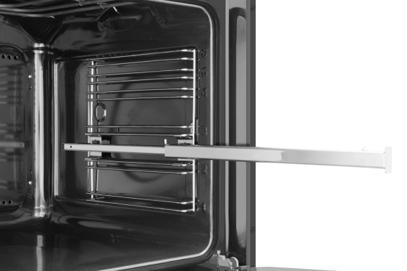 Телескопические направляющие позволяют легко извлечь противни, даже сильно загруженные, и повысить эксплуатационную безопасность: противни прочно прикреплены к направляющим и выдвижение их в значительной степени снижает возможность ожогов.