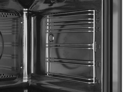 Это решение сохраняет внутреннюю часть чистой, а так же обеспечивает простоту в использовании, так как за гладкими поверхностями легче ухаживать. Мы используем легко очищающаяся эмаль в качестве стандартной во всех наших духовых шкафах.